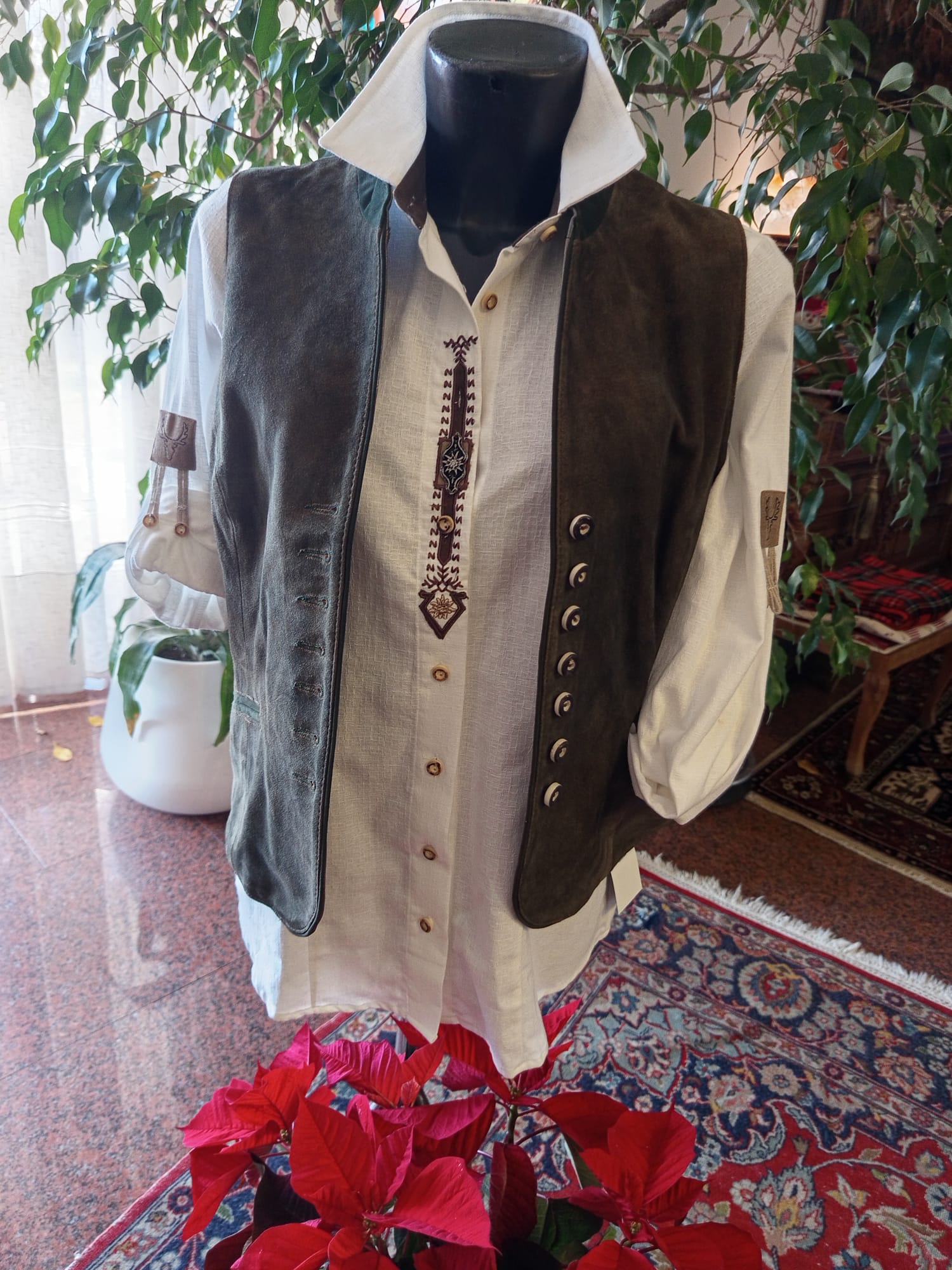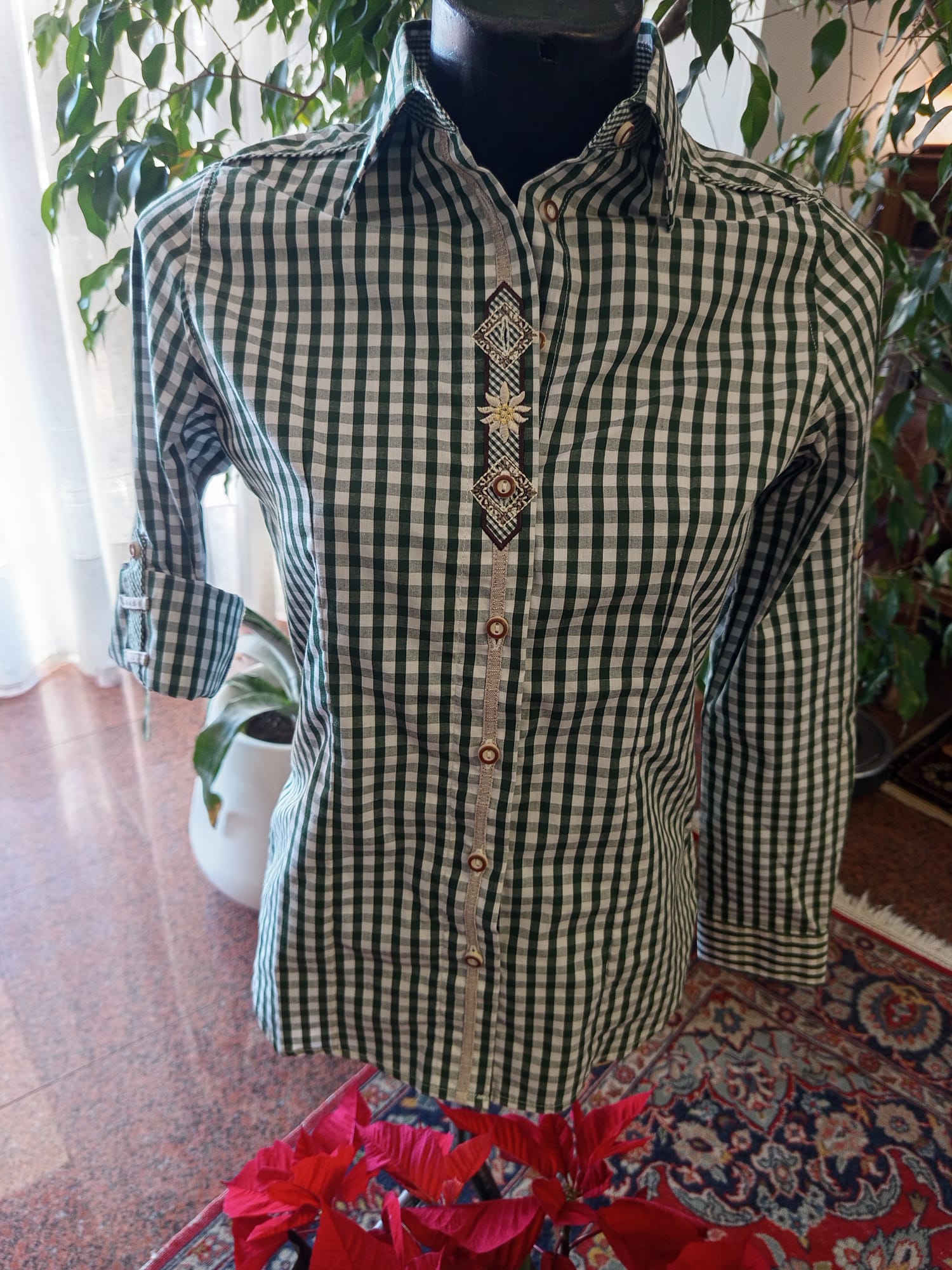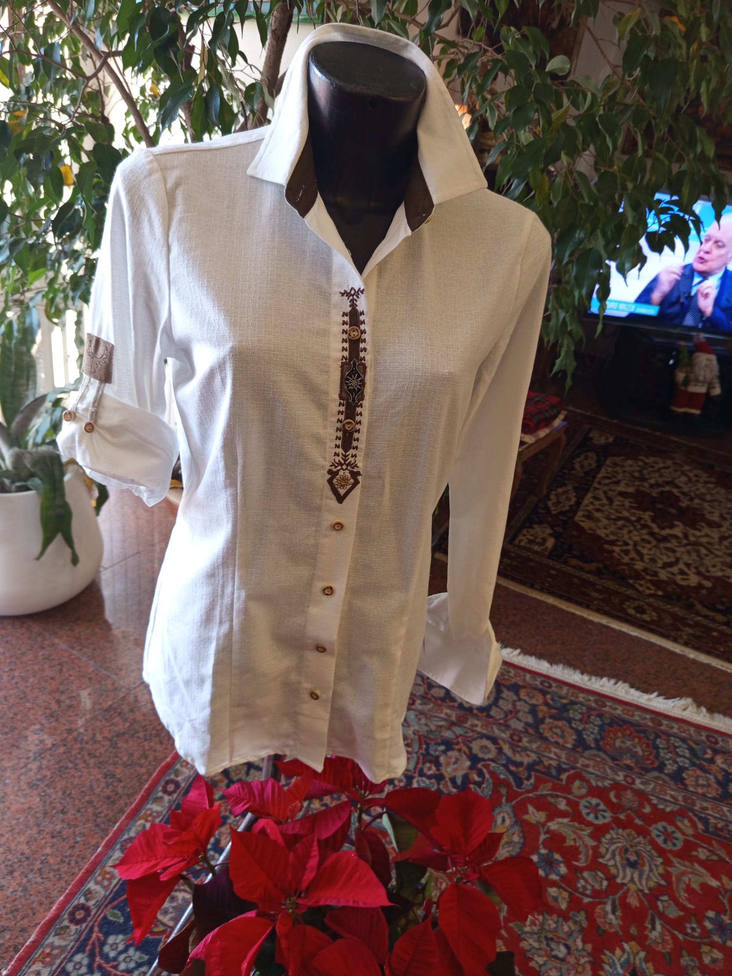 Novità...camicie donna e uomo tirolesi in cotone con guarnizioni ricamate e bottoni tipici
